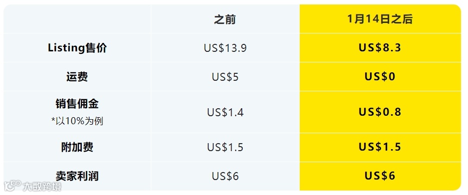 自1月14日起,售价低于各站点包邮门槛的商品运费将由买家承担,卖家只需为售价高于包邮门槛的商品支付运费。