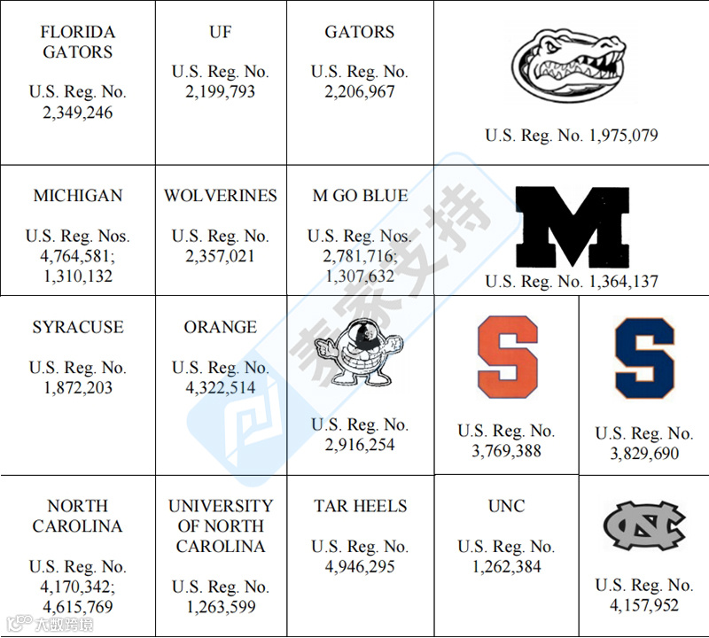 本案原告CLC注册并管理多个与大学、学院、体育会议等相关的商标,如CLEMSON TIGERS、KU、UCLA、MICHIGAN等。近年来,CLC委托GBC律所发起了多起商标维权案件,以维护其客户的合法权益。新年来临之际,一天连发三案,跨境卖家切勿大意,速速排查。