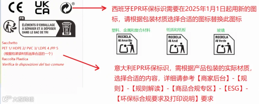 ② 自 2025 年1月1日起,西班牙 EPR 环保标识需按照新的图标标识。