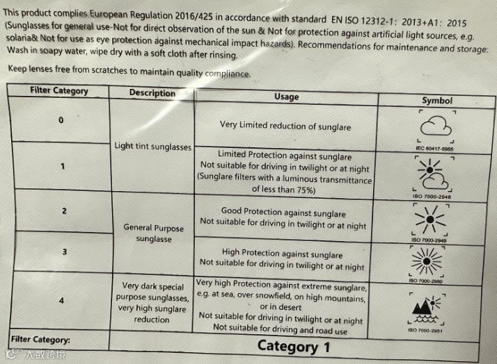 3、关于特殊功能眼镜的要求:具有防蓝光,防紫外线,防偏光功能的眼镜,在提供合格的检测报告后,需按照太阳镜的标签内容做标识。
