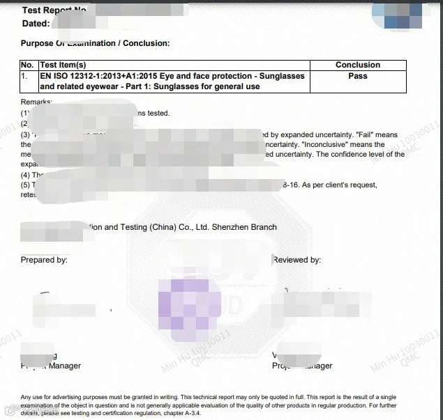 欧洲太阳镜检测报告:EN ISO 12312