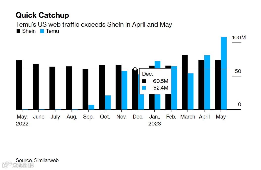 彭博Second Measure在分析数十亿信用卡和借记卡交易的数据后指出,5月美国人在Temu的消费支出比在Shein高出了近20%。如今,Temu在美国App Store的购物类应用中排名第一,而第二名、第三名分别是Shein、亚马逊。除此之外,Temu在其他市场如英国、澳洲等市场也受到广泛欢迎。