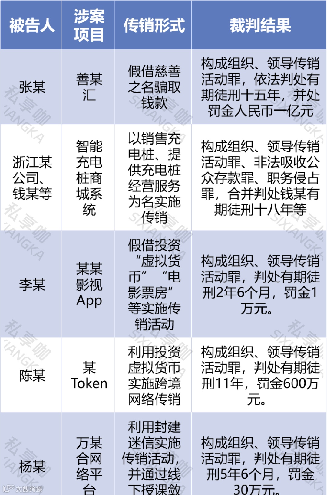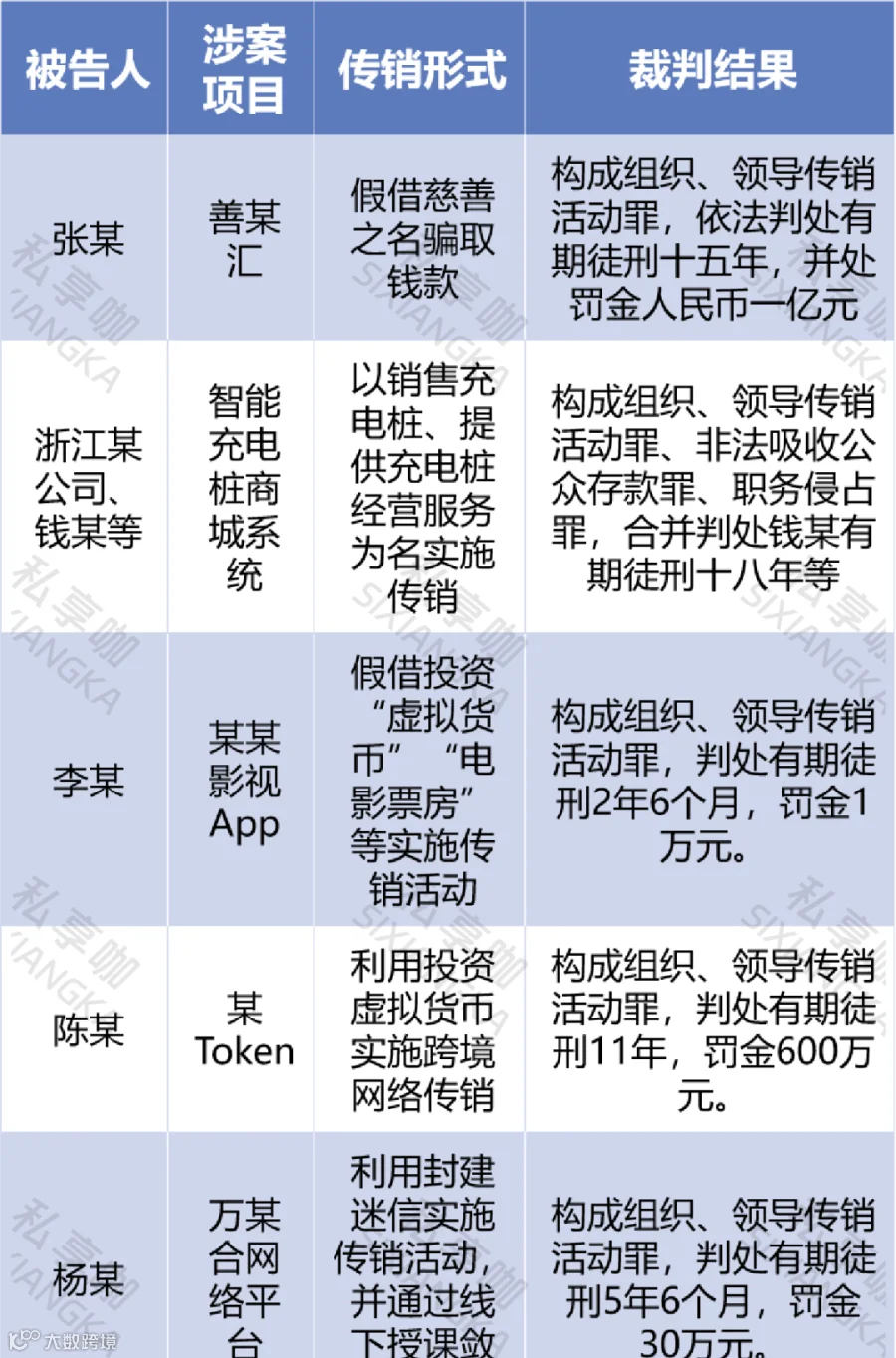 经统计,此次最高人民法法院、国家市场监督管理总局公布的五起网络传销典型案例的具体情况如下表所示: