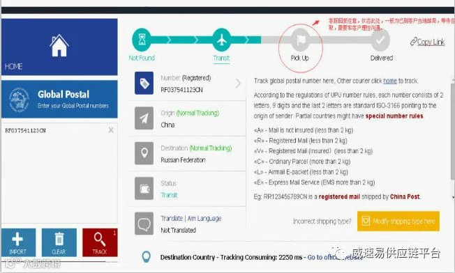 在物流过程中,若买家询问货物进展或对送达时间产生疑问,卖家需尽快通过物流单号追踪并提供最新动态。例如,“PICK UP”表示已到达当地邮局等待自取。