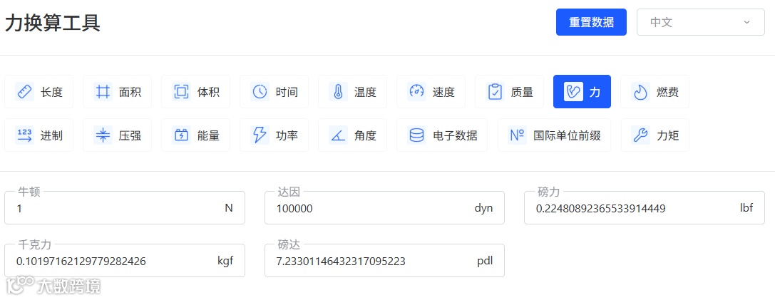大数跨境网站全新打造的力换算工具,以其简明扼要且直观友好的操作界面,给用户呈上超乎想象的便捷感受。