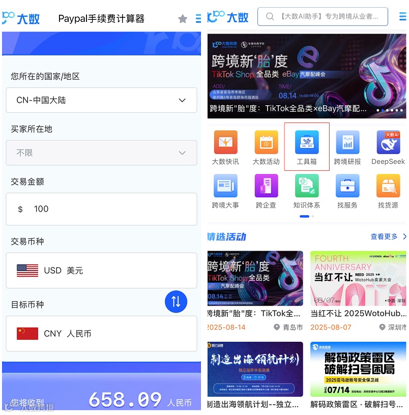为提升体验和实用性,大数跨境正式上线【PayPal手续费计算器】,为中国跨境卖家提供清晰、快速、专业的手续费计算服务。