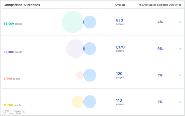 使用Facebook Ads Manager广告管理器中的Audience Overlap工具,分析并比较受众重叠情况。关注与当前目标受众有相似点的潜在用户群体,使用更多维度的高级选项进行定位。