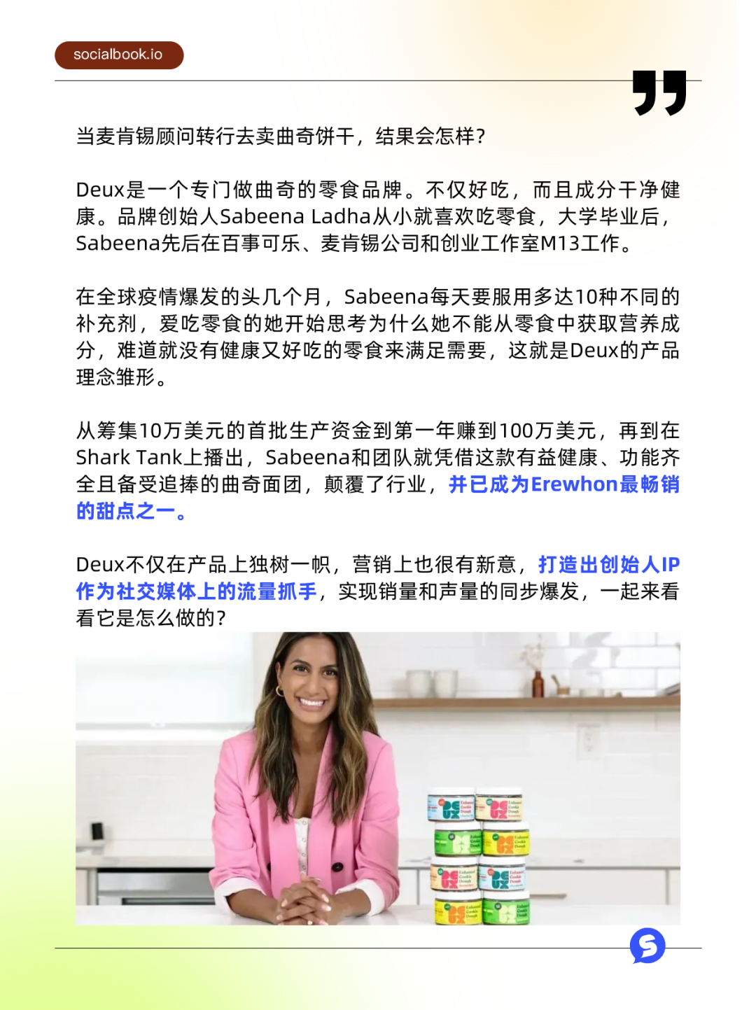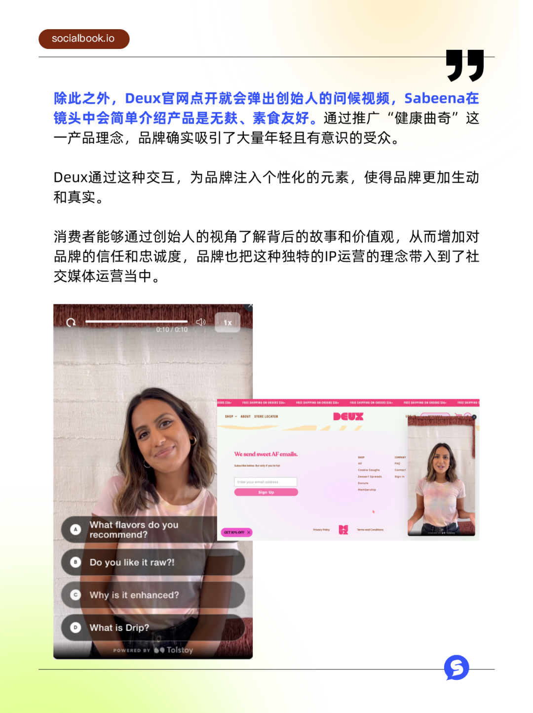 Deux不仅在产品上独树一帜,其营销策略也别具一格。通过将创始人打造成社交媒体上的流量焦点,成功实现了销量与品牌知名度的双重提升。让我们一起来探索它的成功秘诀!