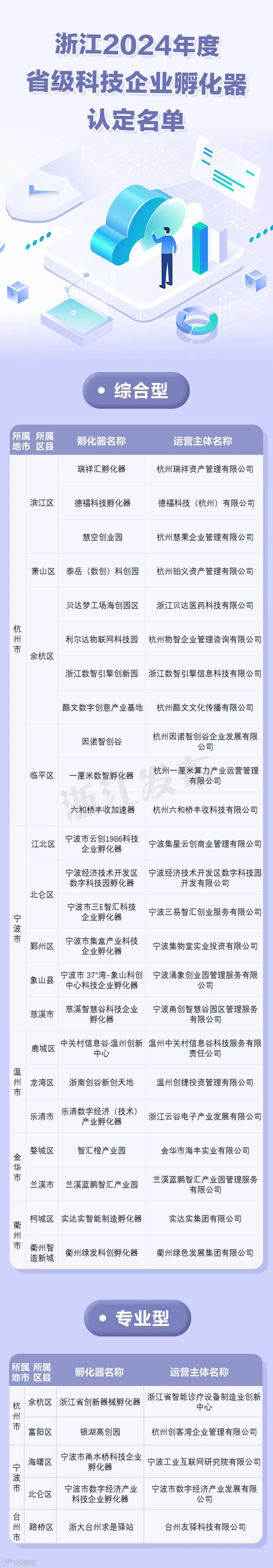 导读:给予资金奖励!浙江公布2024年度省级科技企业孵化器认定名单