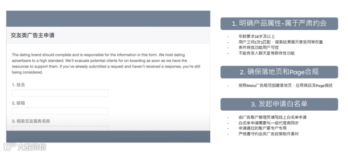 Dating白名单申请注意事项 图源:Meta《社交行业营销白皮书》,