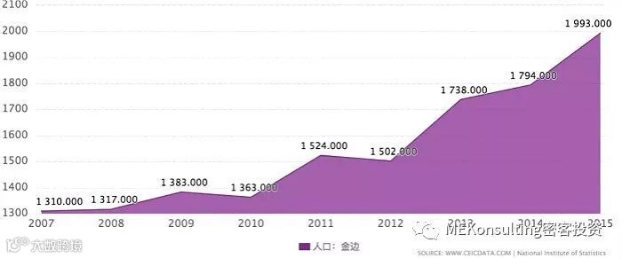 金边每年新增劳动力达20-30万人,且全国大部分人口集中在首都周边,人口自然增长率较高。预计未来10年至20年金边人口将翻倍。