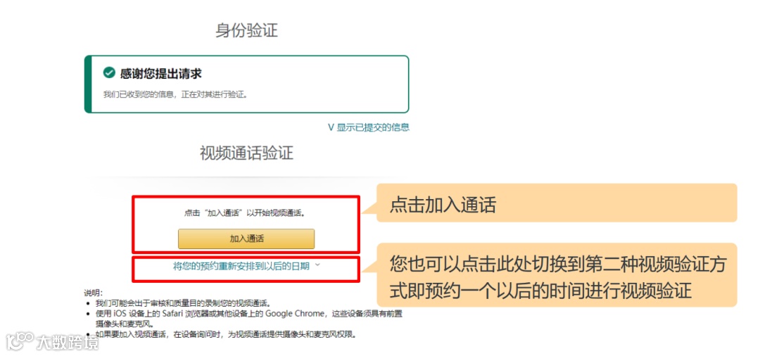 亚马逊为您提供两种视频验证方式。
