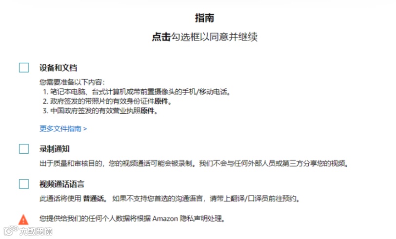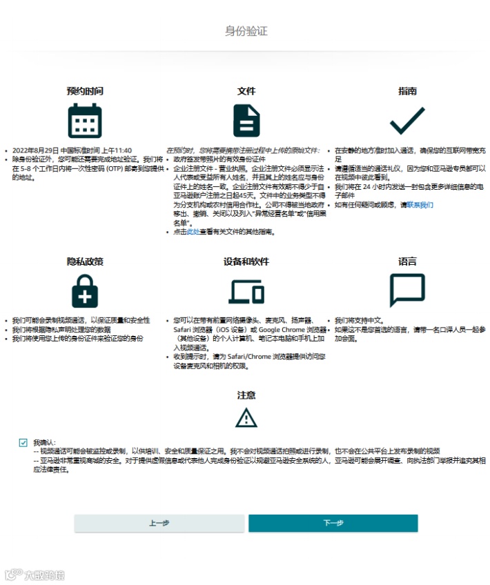 3)协助人员只能提供翻译、设备调试、网络设置等协助,不可在视频验证中对亚马逊工作人员提出的任何问题进行干涉及回答。