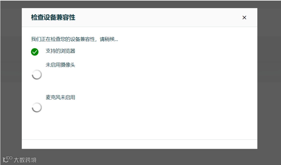 点击“加入通话”后,系统会自动检测您的设备兼容性,包括浏览器,摄像头以及麦克风。推荐使用Chrome 或 Safari (mac Os 系统) 浏览器。