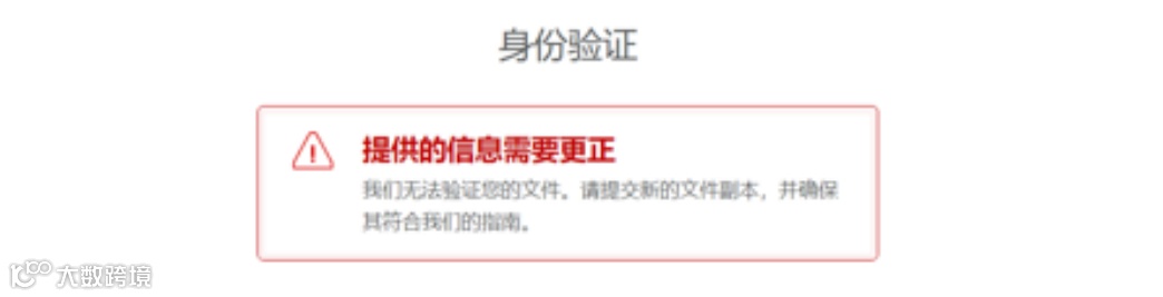 在身份验证过程中,您若见到注册界面出现以下提示,则表示您提交的身份证和营业执照照片不符合要求,请您根据要求重新拍摄照片后再次提交。