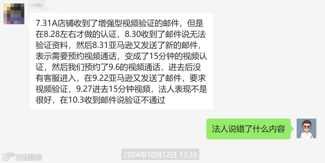 增强型视频验证的主要目的是为了确认店铺的实际运营者是否真的是法人本人,以此来打击那些利用他人资料注册店铺并进行违规套现的行为。如果在视频验证过程中,审核人员判定运营者并非法人本人,那么视频验证就会失败,卖家将不得不提交代运营的相关资料。因此,在进行视频审核的过程中,卖家必须确保能够清晰地展示出法人亲自运营店铺的场景,这就要求卖家对亚马逊平台的相关问题进行充分的准备和培训。