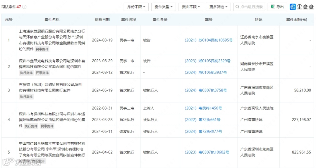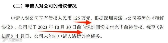 据悉,有棵树欠深圳圆漾的债务金额为125万元。根据双方早前签署的《和解协议》,有棵树应在2023年10月30日前还清这笔欠款,但直至逾期近一年后,该笔债务仍未得到清偿,迫使深圳圆漾不得不采取法律手段。