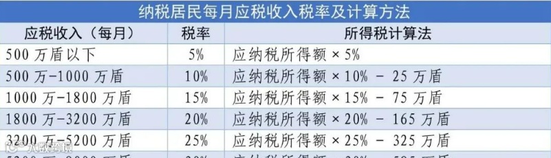 越南税务部门对经常所得分设7档超额累进税率,从5%-35%: