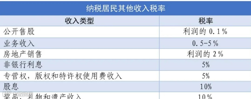 除了经常所得,越南纳税居民资本投资所得、资产转让所得、不动产转让所得、中奖所得、版权所得、商业特许权所得、遗产或赠予所得适用下列税率:
