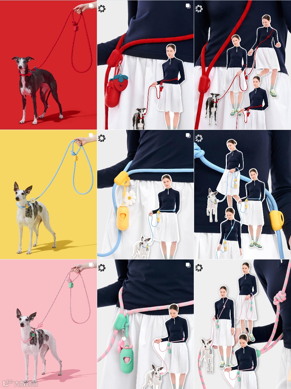 听起来你或许会觉得平平无奇,但得益于品牌团队的高审美水平,这些帖文的观感都非常亮眼,调性十足,每一个都像是时尚杂志里的配图,活脱脱就是奢侈品给自家宠物产品线拍摄的精致照片。