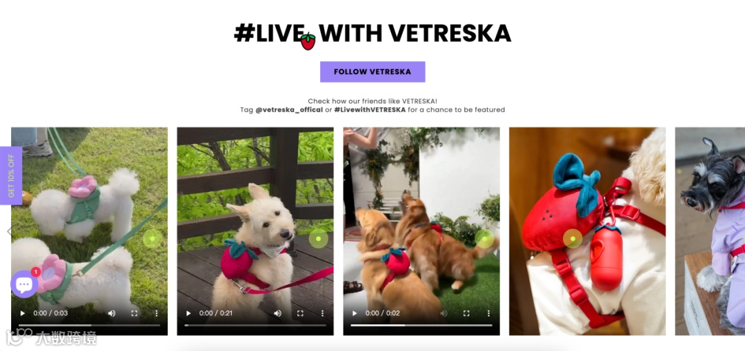 与此同时,Vetreska非常重视UGC内容,品牌引主动导用户在社交平台分享开箱视频或宠物日常,然后把这些内容放置在官网,方便用户浏览观看。
