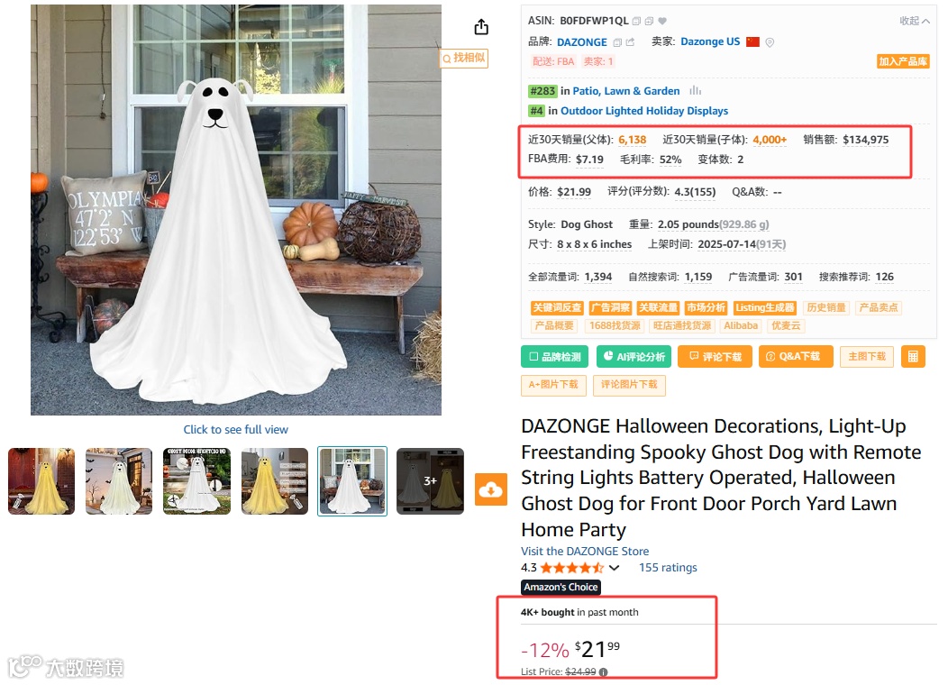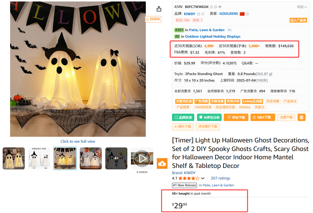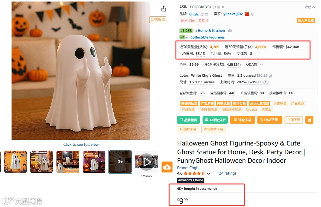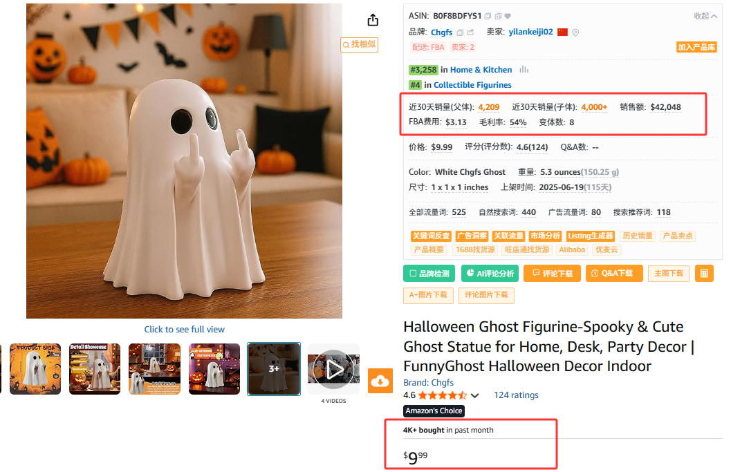 再比如下面这款新品B0F8BDFYS1(上架115天),幽灵摆件竖着两根中指,近30天的销量也有4000+。