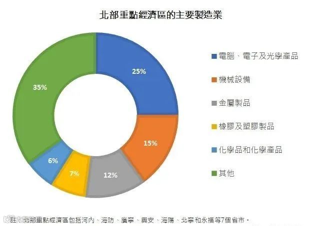 中资企业在越南主要集中在北部和南部,很多电子巨头、研发中心、建筑公司的总部都在北部,以重工业为主,南方的自然条件比北方好,很多大型加工生产、贸易业都在南部,以轻工业为主。