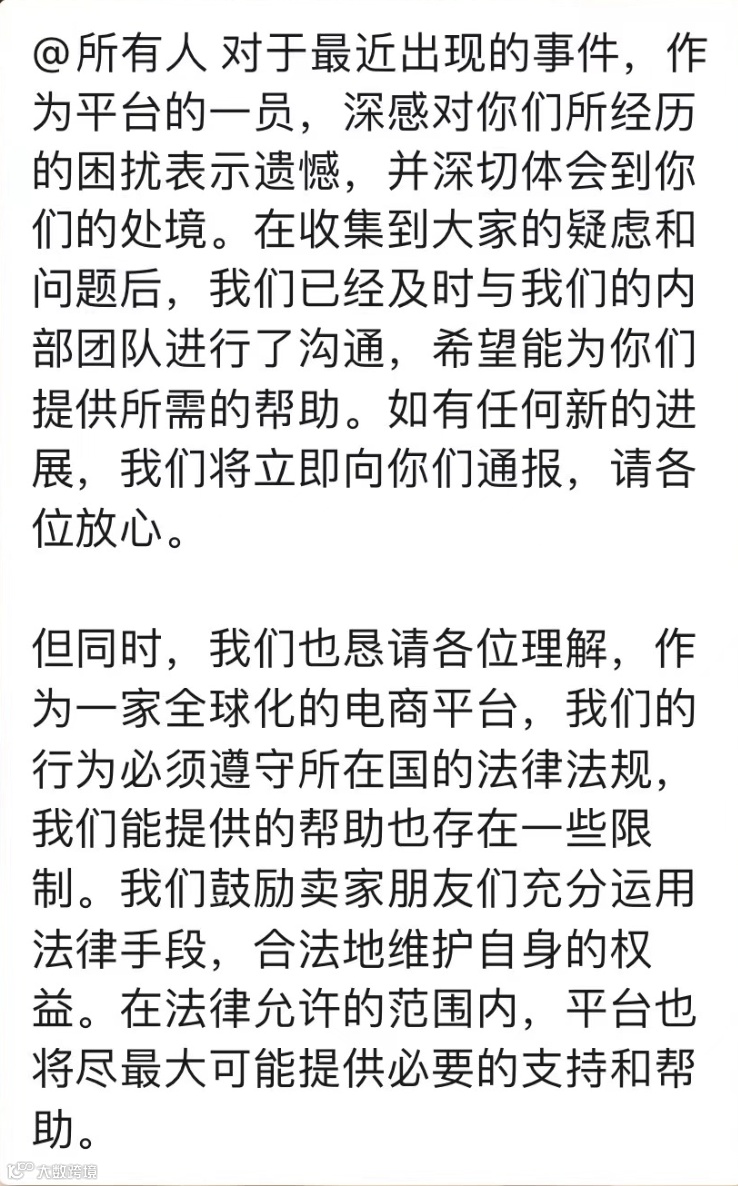 对于广大卖家而言,此次事件也提醒我们要加强自身的防范意识和能力。在选择电商平台时,要充分考虑平台的安全性和稳定性;在经营过程中,要严格遵守平台的规则和制度,避免给不法分子可乘之机。同时,我们也要积极维护自身的权益,遇到侵权行为时要及时向平台或有关部门投诉举报。