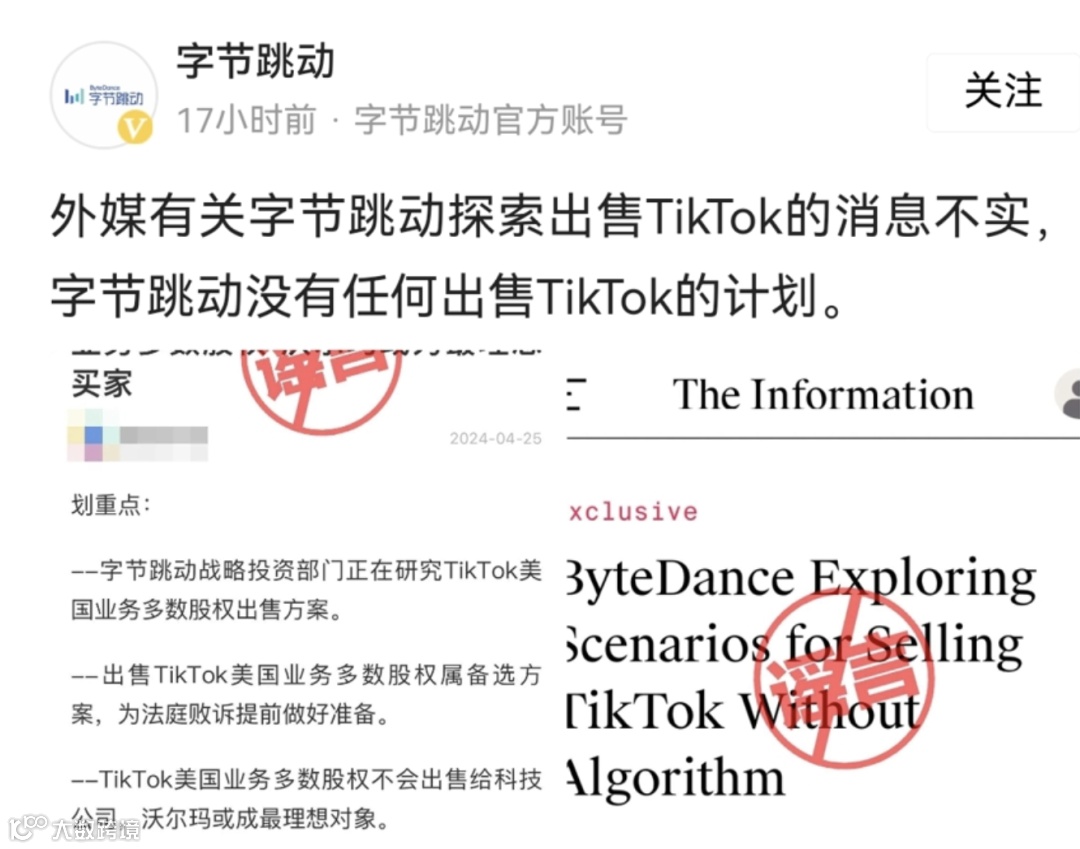 4月25日,字节回应:外媒有关字节跳动探索出售Tik Tok的消息不实,字节没有任何出售Tik Tok的计划。