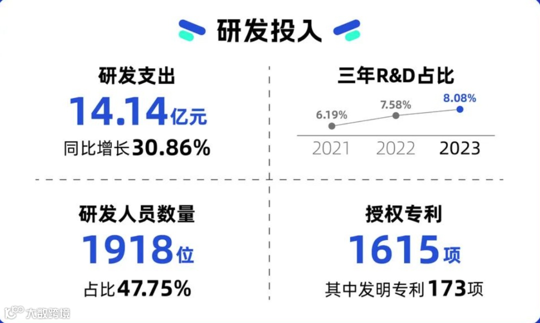 一是坚持产品研发和技术创新,2023年研发投入同比增长30.86%,占营业收入的比例保持在行业高水平。在报告期内,公司研发费用为14.14亿元,同比增长30.86%,占营业收入的8.08%。研发资金、人员等条件充足,产品创新的节奏也更快。2023年安克创新推出了多款新品,并在全球范围内取得了众多发明专利和实用新型专利。