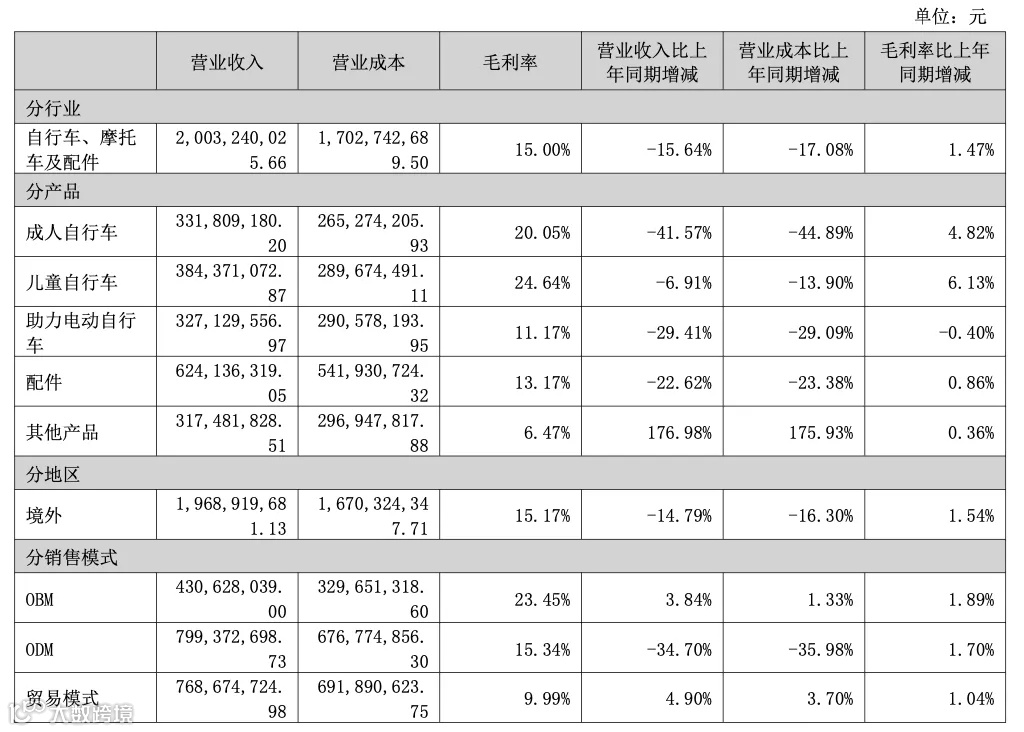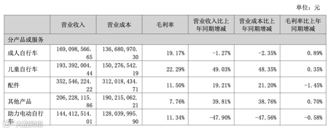 从毛利率来看,儿童自行车毛利率最高,为24.64%。