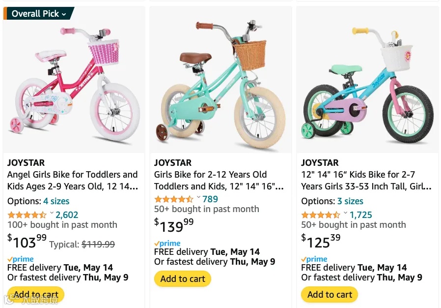 经过多年的努力,久祺股份在海外市场中建立了稳定的客户群体,产品远销全球80多个国家和地区。在自主品牌方面,久祺股份的joystar、cycmoto等童车品牌以及hiland、rockshark等成人车品牌在跨境电商平台上销售表现突出。在亚马逊平台上,joystar的产品尤为引人注目,多个单品的评论数高达上千条。