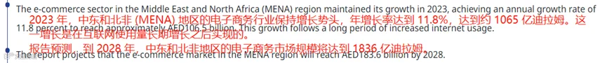 以及中东和北非电商市场。一份来自EZDubai和欧睿国际的数据显示,早在2023年,中东和北非电商市场规模就已经达到了1065亿阿联酋迪拉姆(约合290亿美元),而到2028年时,这一数字预计会增长到1836亿迪拉姆(约合500亿美元),复合年增长率约为11.6%。