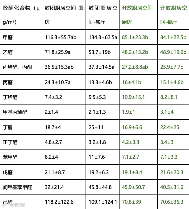 Well人居实验在四个实验环境中展开,分别记录未使用集成烹饪中心的封闭厨房和封闭厨房的餐厅检测数据,以及使用集成烹饪中心的开放厨房和开放厨房的餐厅的检测数据。测验结果显示,大部分醛酮类化合物在封闭厨房和餐厅中的浓度均高于开放厨房,这表明使用集成烹饪中心能够更好地减少“醉油”现象,方太集成烹饪中心的空气净化效果立竿见影。