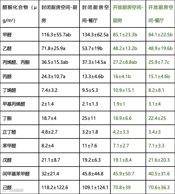 图:Well人居实验室封闭/开放厨房及餐厅污染物浓度测试结果