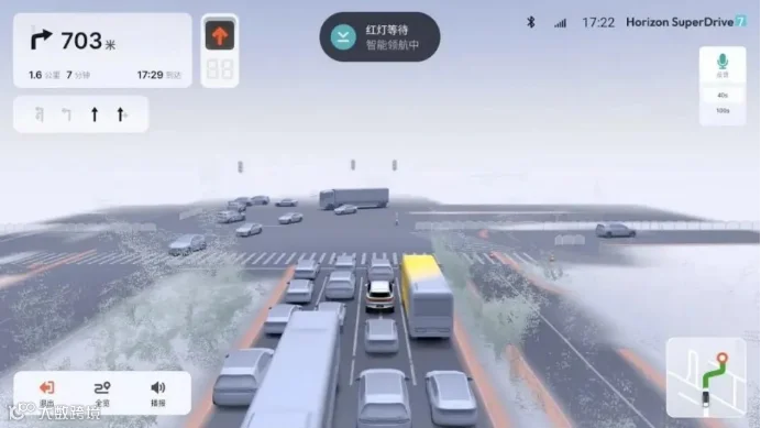 今年8月底,地平线在北京向部分媒体开放了第一版高阶智驾方案的体验。从媒体的体验反馈来看,地平线SuperDrive对物理世界进行了高度还原,不仅能够渲染道路两旁的树木、天桥等建筑物;针对常见重叠的目标,比如路口的行人、停放的车辆也专门做了感知优化 。