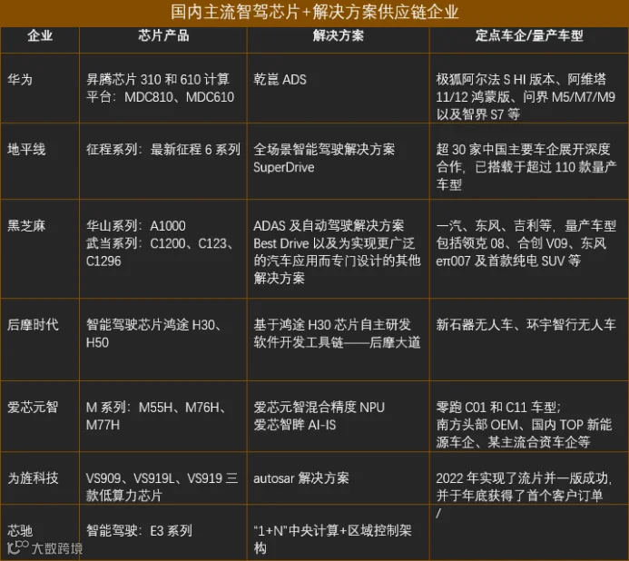当然,除了地平线,竞争对手们也在积极部署整车高阶智能驾驶解决方案。以华为为例,今年4月发布了视觉智驾方案华为ADS基础版,加上海思芯片的加持,已全面覆盖座舱+辅助驾驶需求。