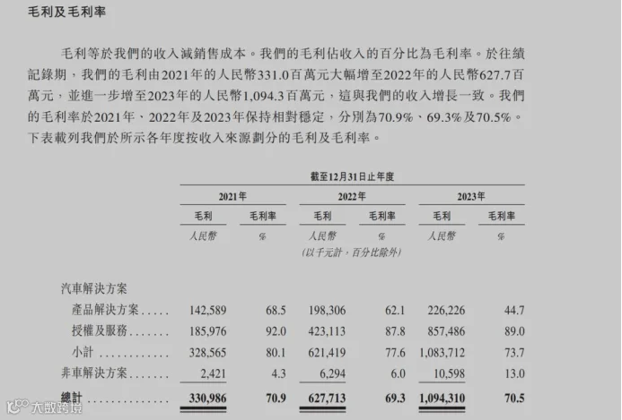 2021至2023年,地平线毛利分别约为3.3亿元、6.3亿元、10.9亿元,年复合增长率为81.8%;毛利率分别为70.9%、69.3%及70.5%。今年上半年,其毛利进一步攀升至约7.4亿元,同比增长226%;毛利率进一步提升至79%。