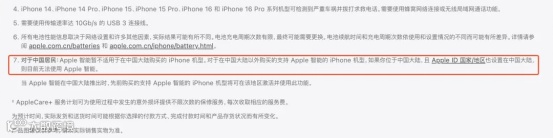 苹果(中国)官网页面显示:“Apple智能暂不适用于在中国大陆购买的iPhone机型。” 同时,Apple 智能的推出时间依监管部门审批情况而定。