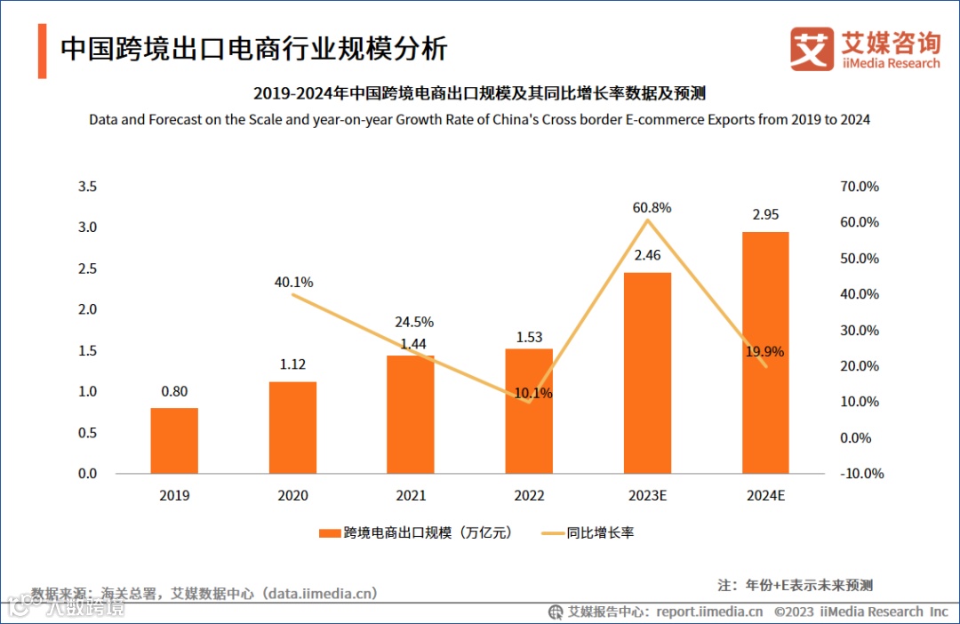 出口一直是我国拉动经济的“三驾马车”之一,电商出海则是其中增长最为迅猛的一部分。艾媒咨询分析报告指出,中国2024年全年跨境出口电商行业规模有望达到2.95万亿元。