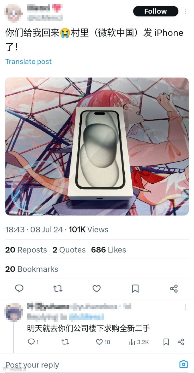 微软中国阔绰出手,员工免费领取iPhone 15?