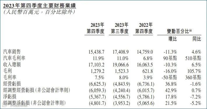 但降价带来的销量增长并没有达到预期。结果就是蔚来去年全年的新车交付量刚刚超过16万辆,只完成了原定目标的六成多一点。而且加入价格战之后,蔚来的汽车毛利率也有所下滑。