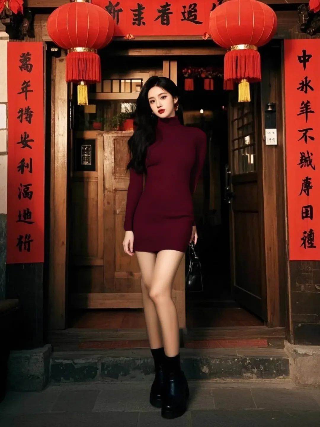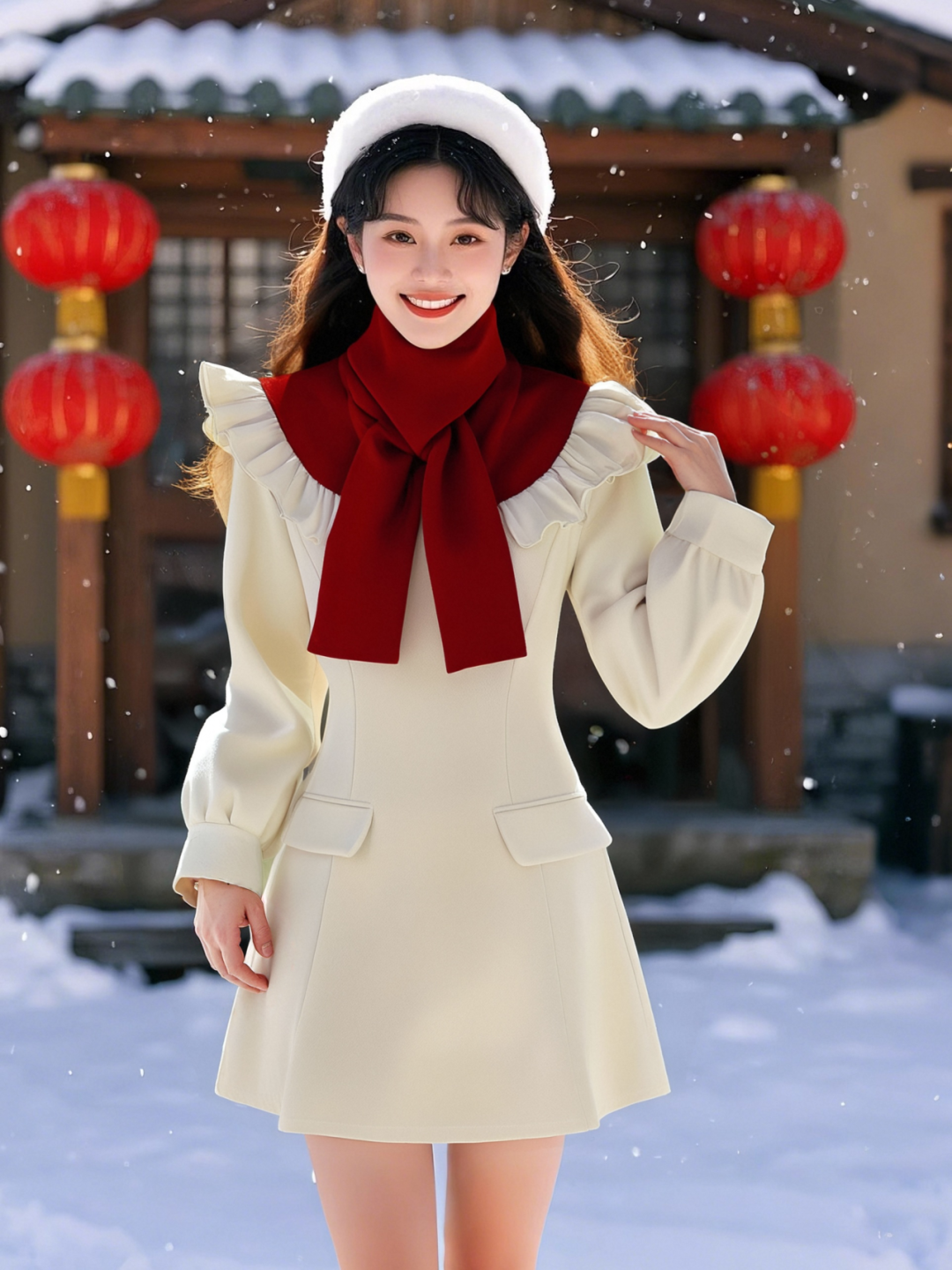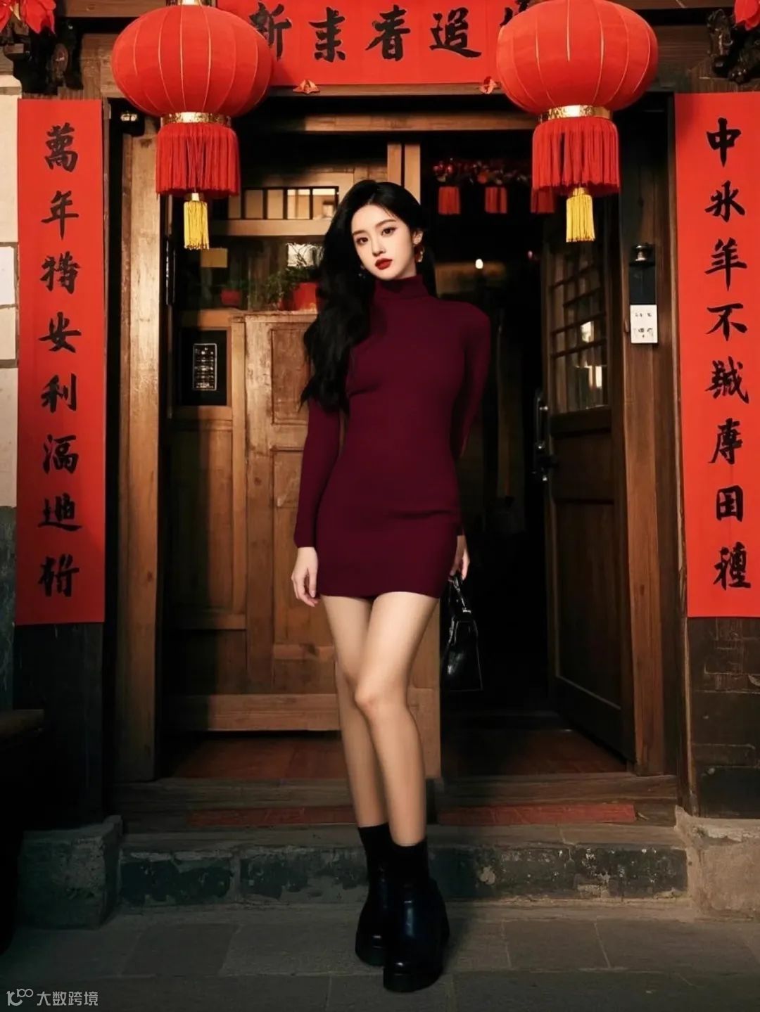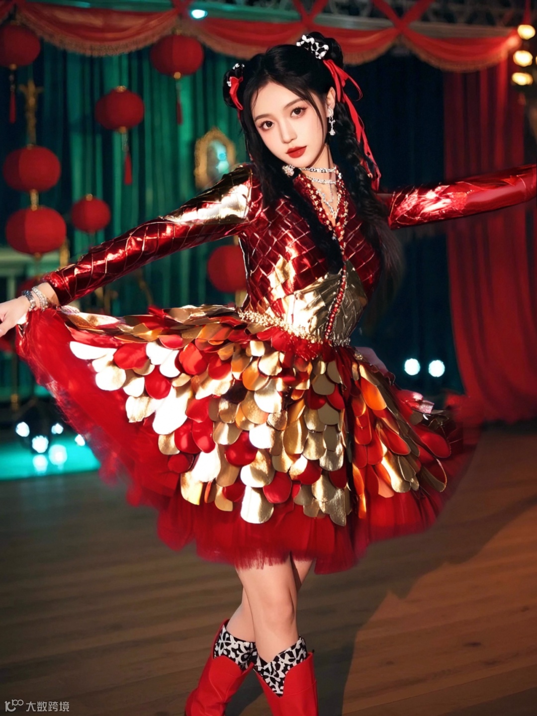 创作思路:以新年穿搭为主题进行服装搭配,进行了衣服原创设计及生成参考图,首先是衣服款式要有设计感要好看,其次是参考图需要有一些氛围感,模特也需要符合整体风格及搭配。