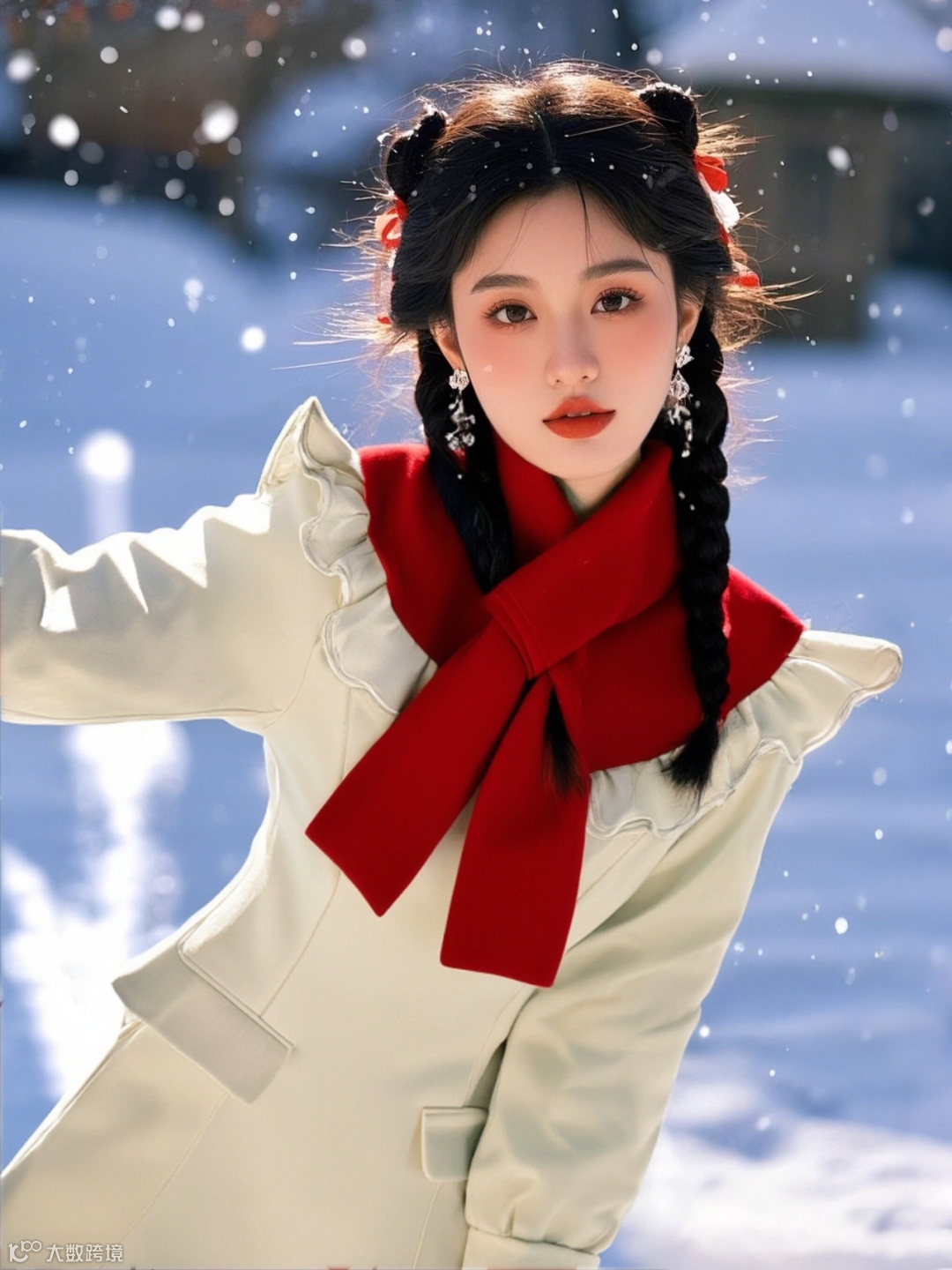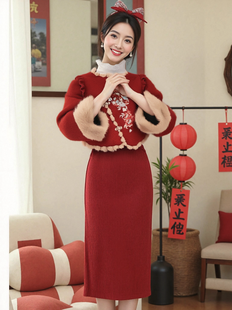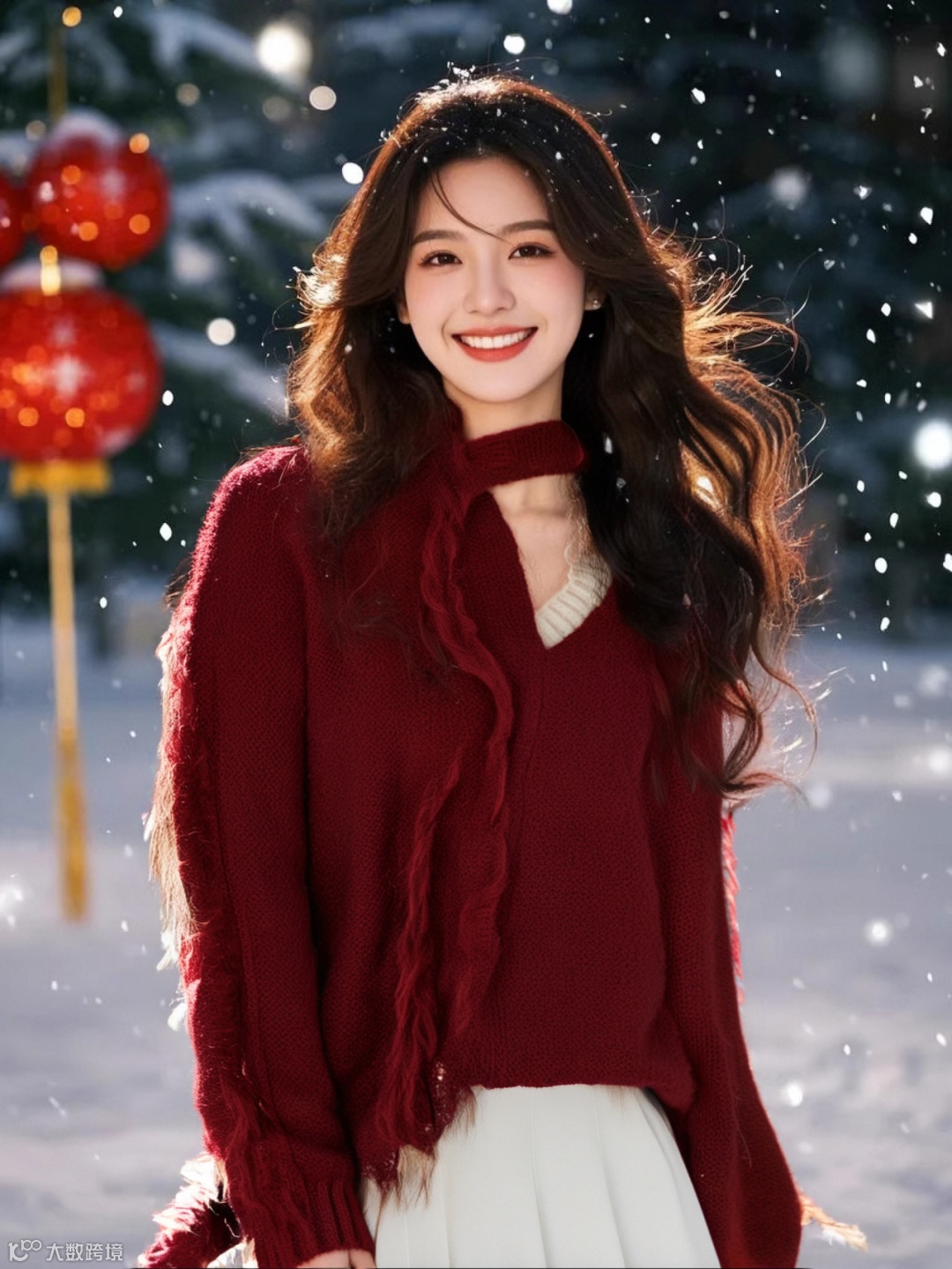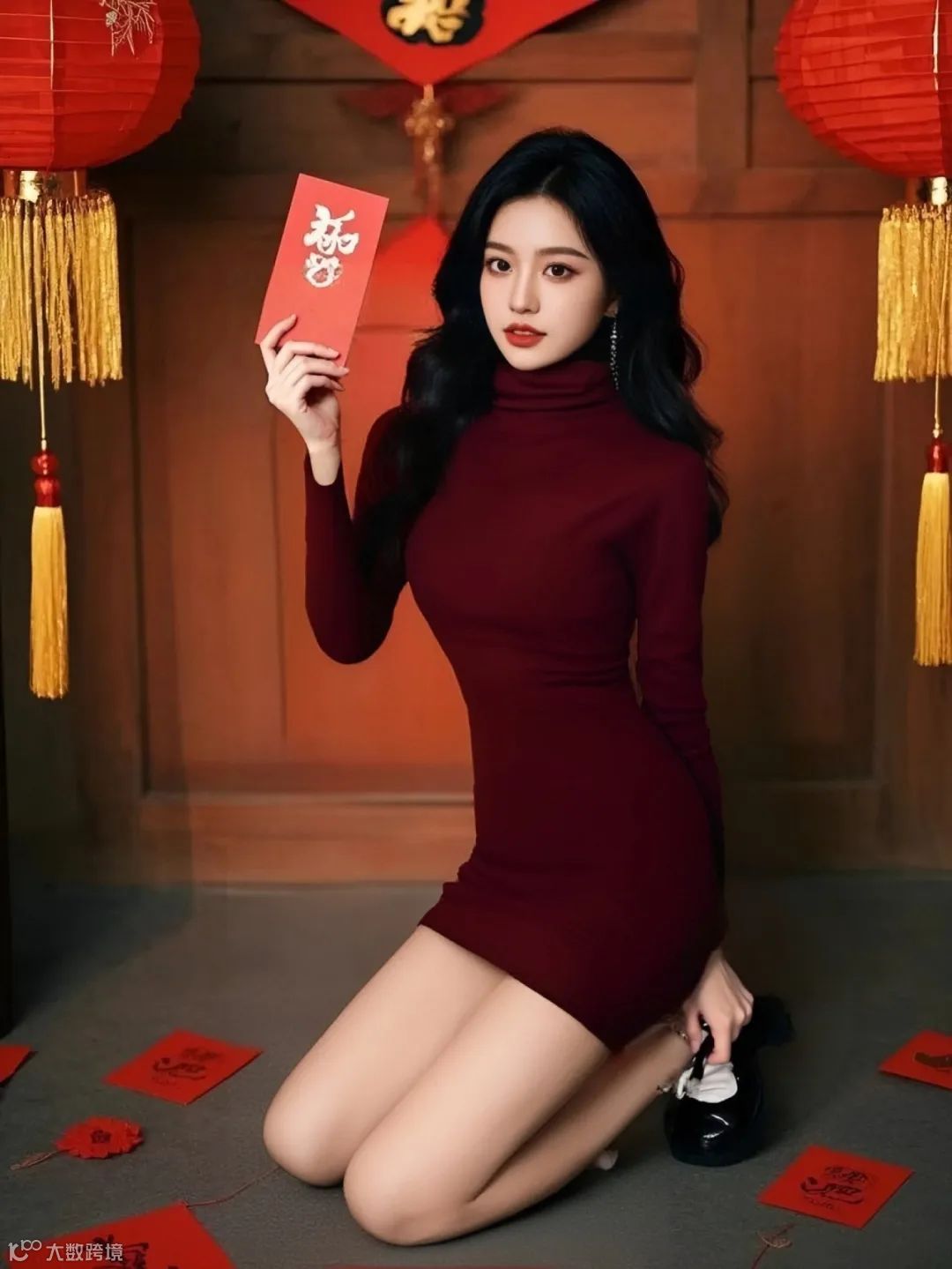 创作思路:以新年穿搭为主题进行服装搭配,进行了衣服原创设计及生成参考图,首先是衣服款式要有设计感要好看,其次是参考图需要有一些氛围感,模特也需要符合整体风格及搭配。