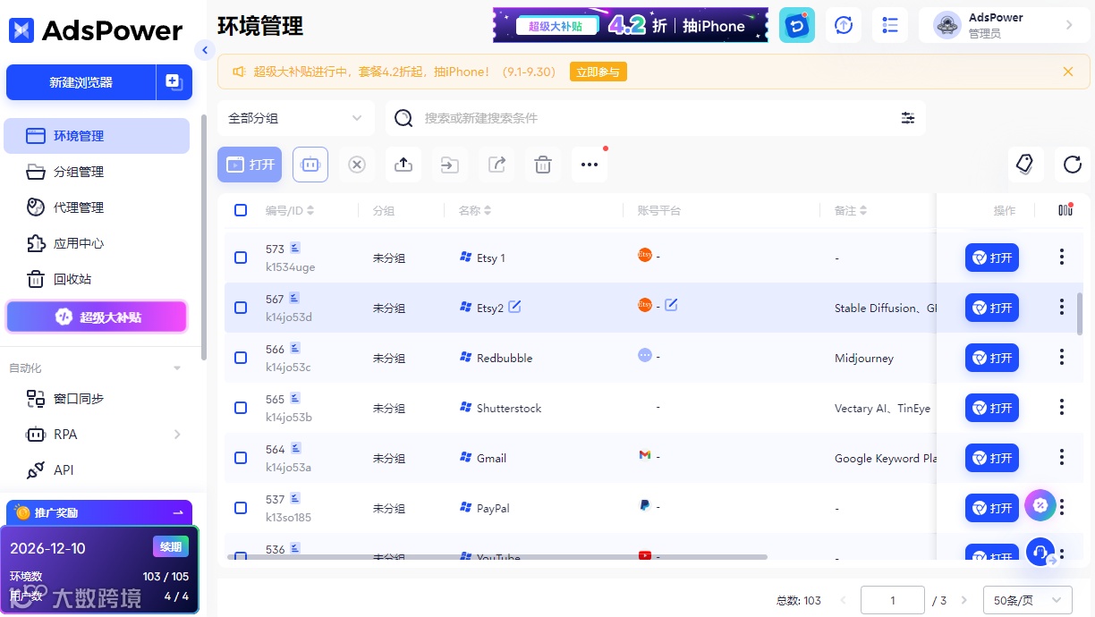 AdsPower 指纹浏览器 能够为每个 店铺账号 打造专属的浏览器环境,相当于每个店铺都有自己的“专属设备 + 独立 IP”,帮你轻松注册和管理多个店铺,实现多店铺的独立运营~