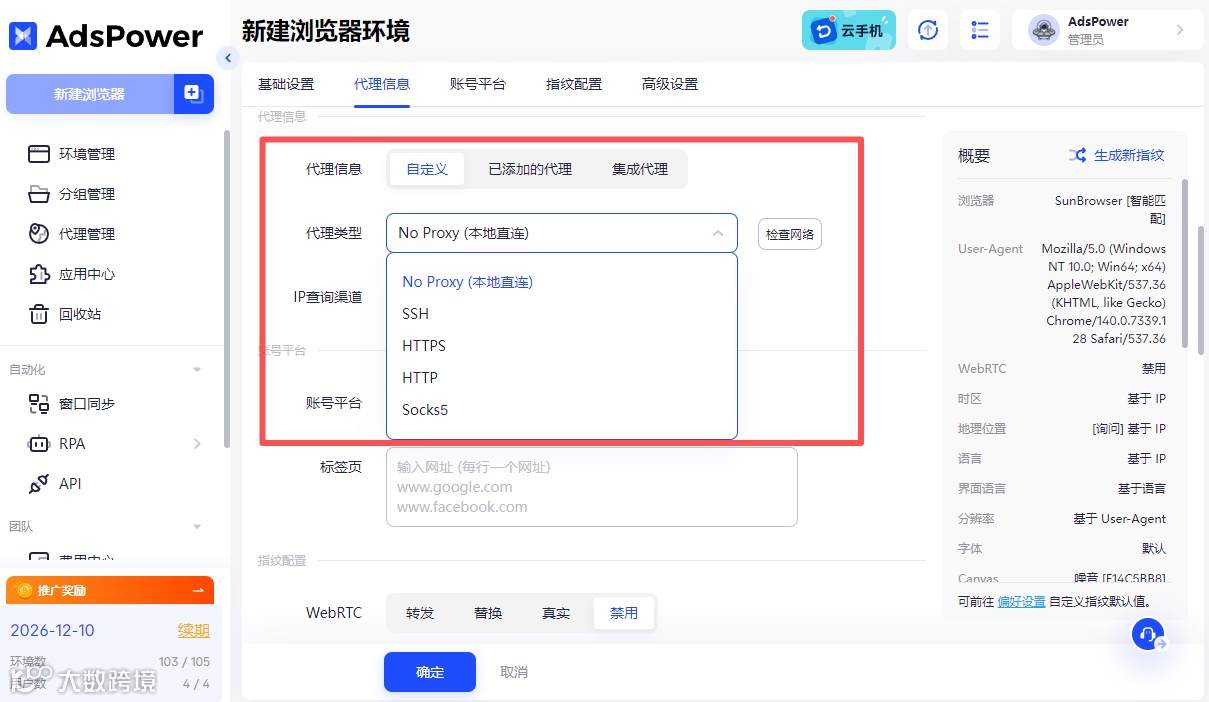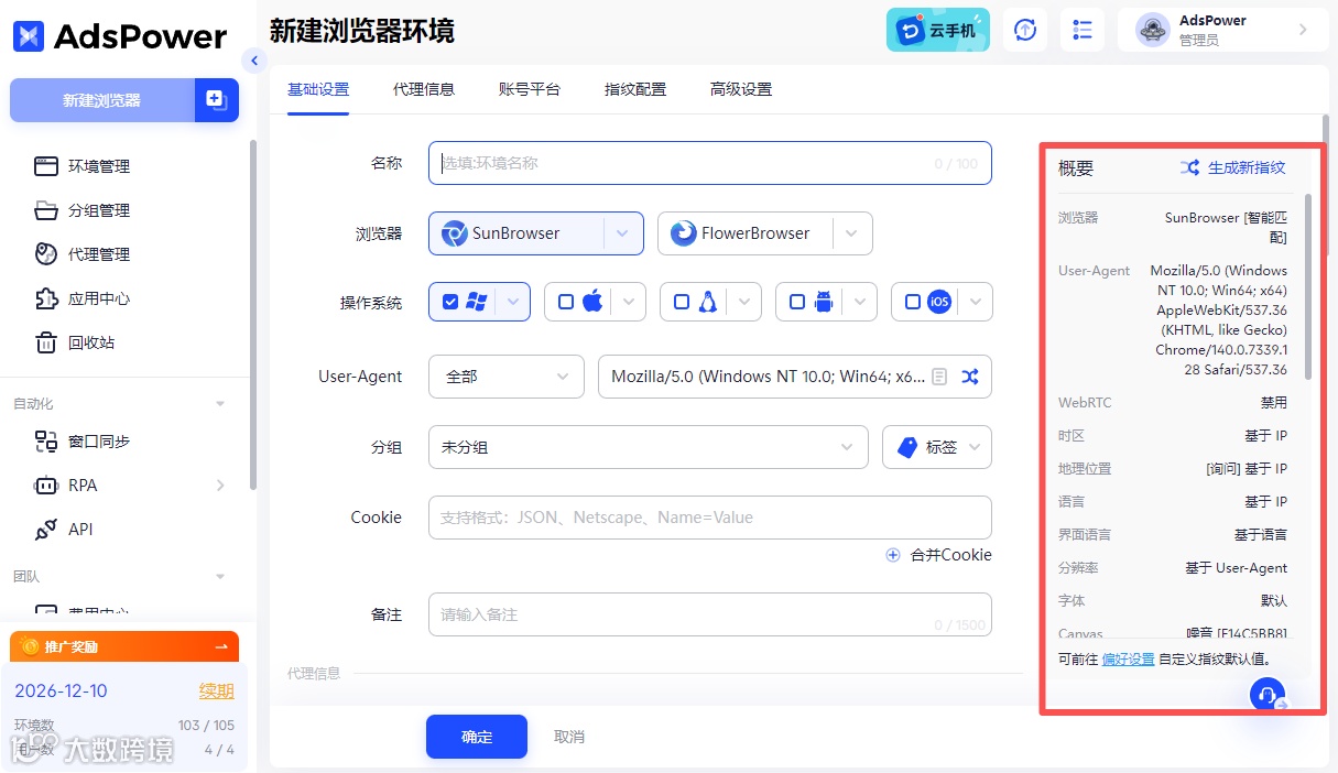 给每个账号造 “独立身份”:生成完全隔离的浏览器环境,每个环境的指纹参数(系统版本、插件列表)都不一样,相当于给每个账号配了一台专属电脑,平台查不到关联;