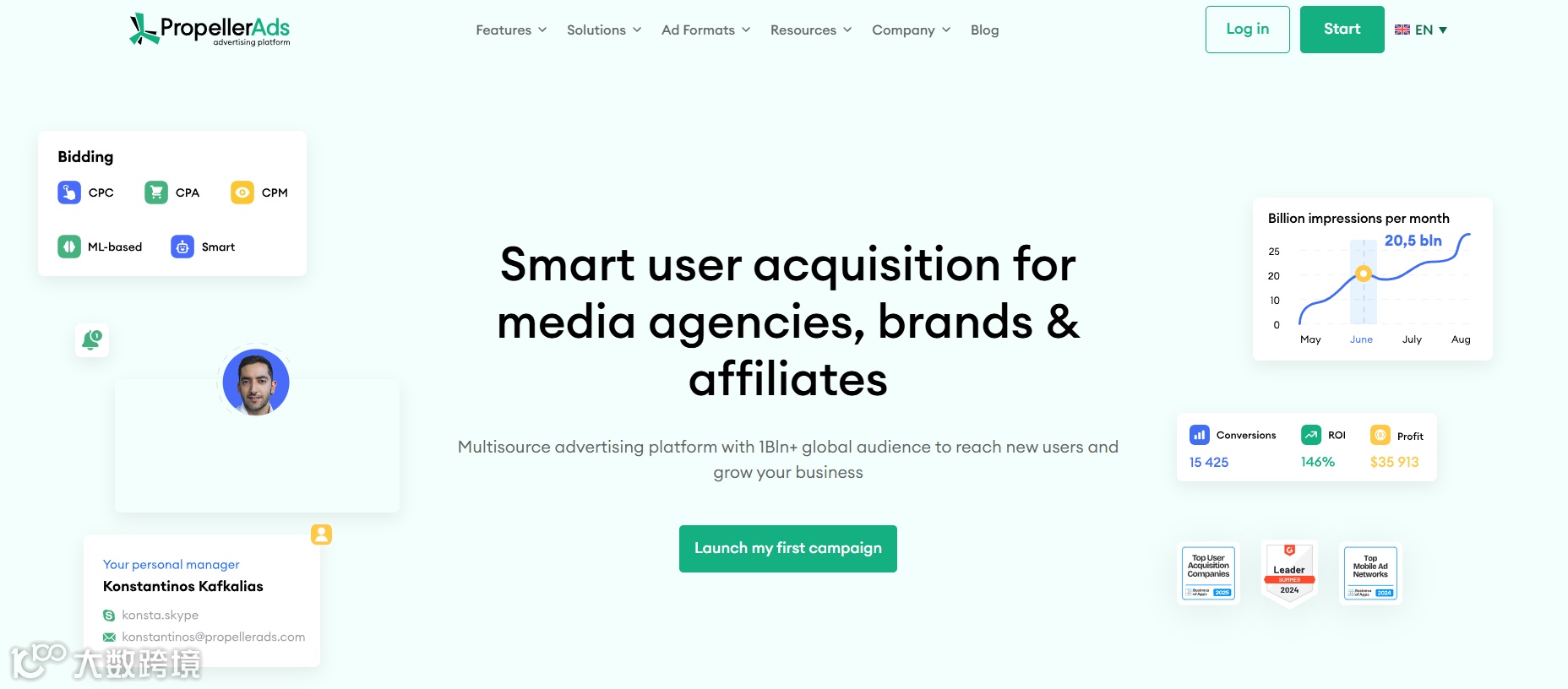 为什么选:流量便宜是核心优势 —— 主打移动端、推送通知、原生广告,单次点击成本(CPC)常低于 0.1 美元,适合对接 CPA 类 offer(比如引导用户注册 APP、下载软件),用低投入赚佣金差,新手试错成本低。