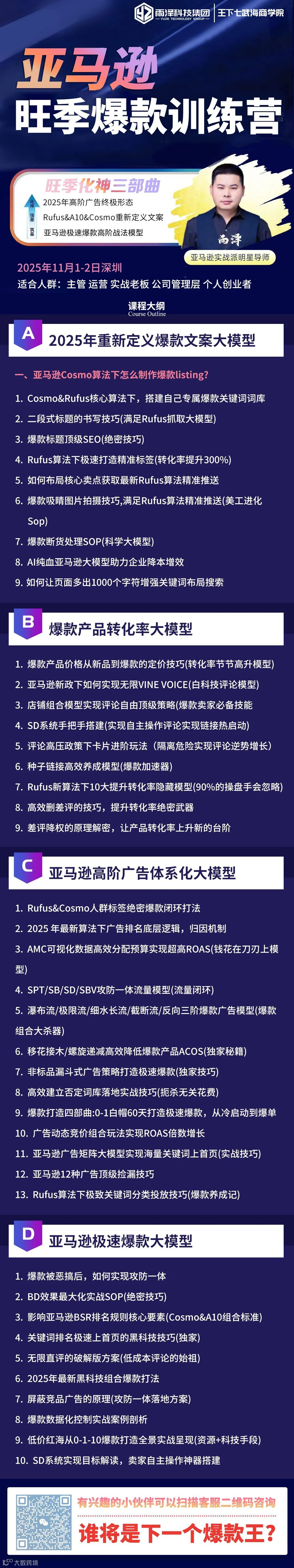 我们拒绝纸上谈兵,我们只聚焦于结果。《亚马逊旺季极速爆款训练营》由[雨泽老师],一位深耕亚马逊一线、操盘过亿级销售额、并成功帮助数百位卖家实现利润翻番的实战派导师亲自打造。