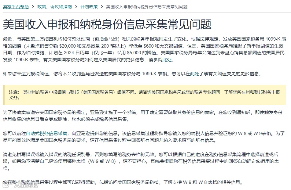 10月13日消息,依据美国 税务局(IRS)的新规定,亚马逊美国站已向众多卖家发出了税务信息更新的通知。