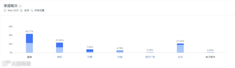 根据similarweb数据显示,Lime Ricki官网的流量主要来自于直接访问流量(43.17%)、自然搜索流量(22.93%)、社交媒体(21.02%)、付费广告(7.62%)。可以看出,Lime Ricki在品牌认知与内容运营上均有较强沉淀,凭借一系列以“真实共鸣”为导向的内容策略,成功建立用户心智,并通过社媒平台高效导流至站点。